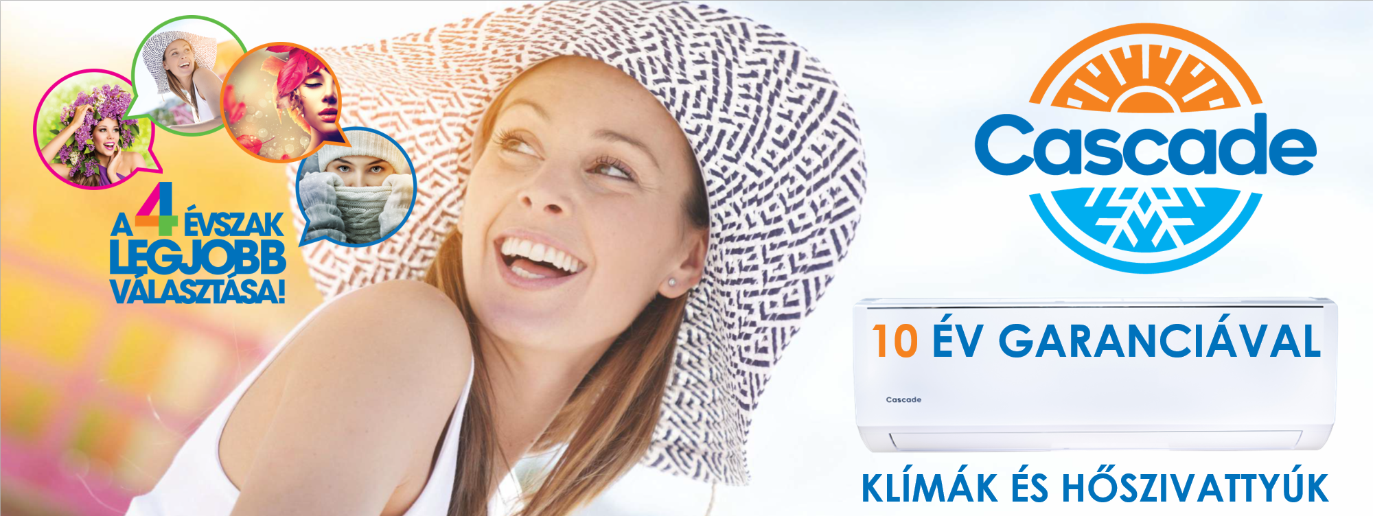 A Cascade berendezések az elmúlt több, mint 10 évben bebizonyították, hogy valóban kiváló ár – érték arányt képviselnek. Fűtésre is gazdaságosan használható termékeinket akár 10 év garanciával azoknak ajánljuk, akik ragaszkodnak a kiváló minőséghez, a fejlett technikához és a kényelmi funkciókhoz, de nem kívánják megfizetni a világmárkák által kért felárat. Klímáink a mai kor követelményeinek megfelelő környezetbarát R32 hűtőközeggel működnek, és a világ vezető márkái által is használt energiatakarékos iker forgódugattyús kompresszorokkal készülnek. Több tízezer elégedett Cascade tulajdonos és a szakértő szerelők is egyöntetűan azt mondják, hogy mind a klímák minősége, mind pedig a szerelhetősége kiemelkedő színvonalú.